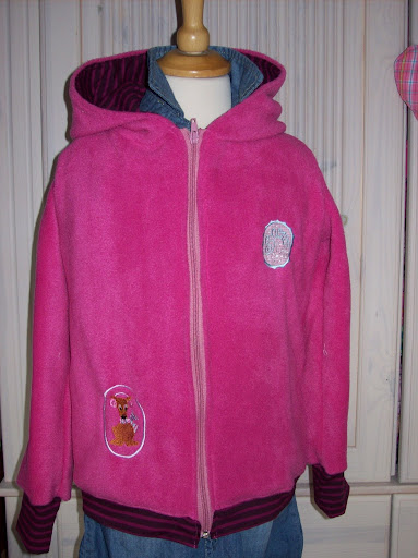 Die Verzögerung kam aber nicht vom Faulenzen...nein ein Geburtstags-Auftrag kam dazwischen...und Geburtstage lassen sich nun einfach nicht verschieben...also los...eine Fleecejacke war gewünscht, in pink, gefüttert und mit Alstervergnüngen-Motive...Voila, bin gespannt wie sie nächste Woche ankommt:
